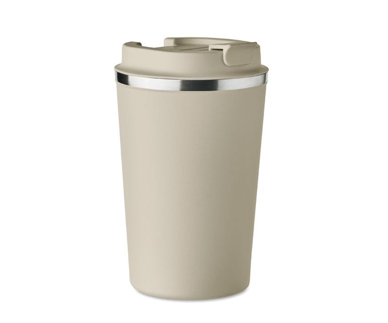 Pahar din otel inoxidabil cu perete dublu si capac din PP. Capacitate: 350 ml. Fara scurgeri.