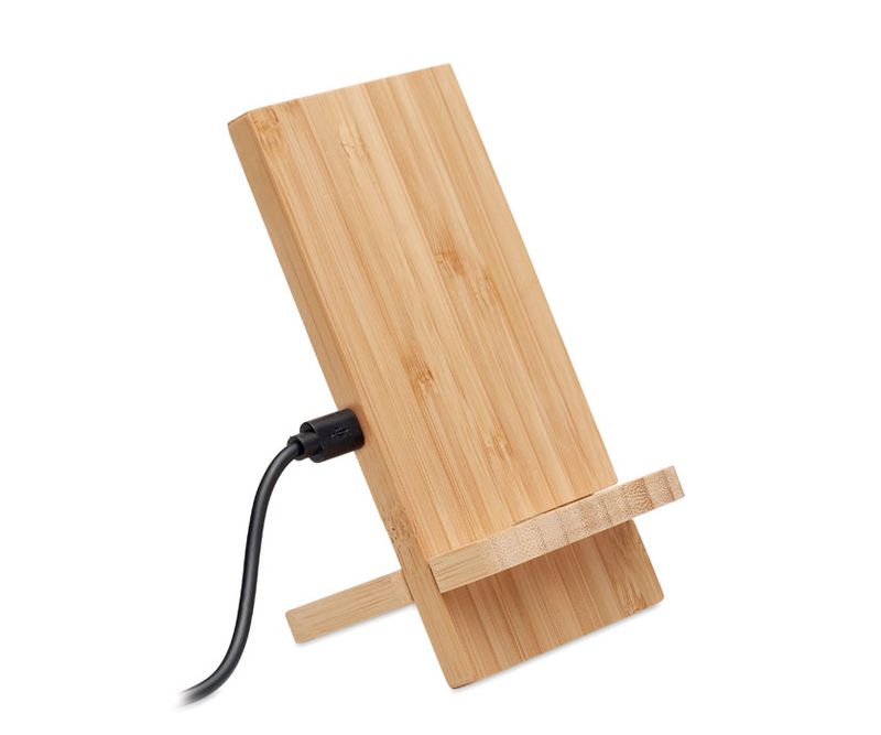 Suport / incarcator fara fir cu bobina dubla, din bambus. Asezati telefonul pe acesta pentru a incepe incarcarea. Include 2 piese, este necesara asamblarea. Iesire: DC 9V/1,1A (10W) pentru incarcare rapida. Bambusul este un produs natural FSC 100% | N5.7 | FSC-C213206