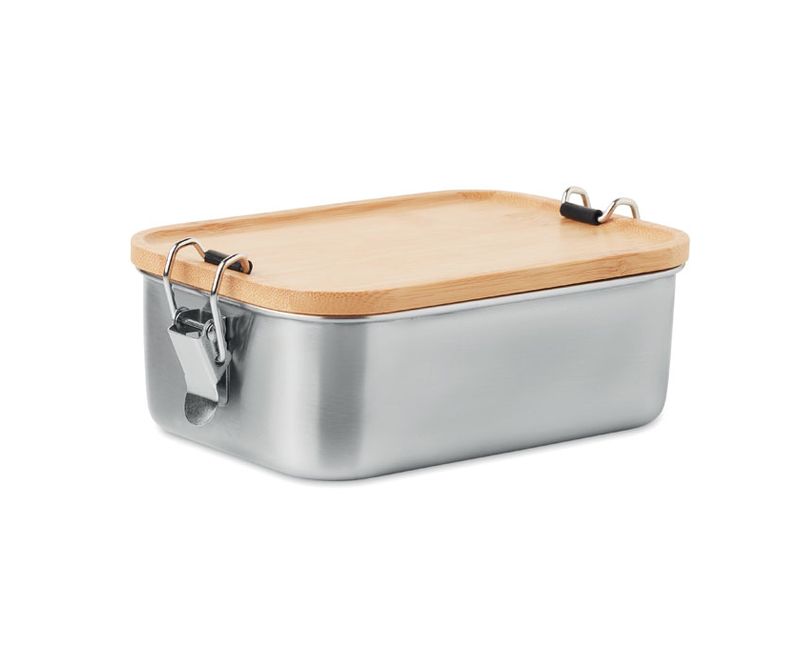 Cutie de pranz din otel inoxidabil cu catarame de inchidere laterale si capac din bambus. Capacitate: 750 ml. Bambusul este un produs natural, in consecinta pot aparea diferente de culoare, dimensiune sau desen.
