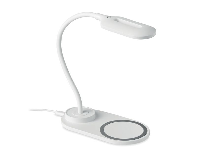 Lampa de birou din ABS cu 10 lumini LED si incarcator wireless de 10 W. Ecran tactil. Iesire: DC 9V/1,1A (10W) pentru incarcare rapida.
