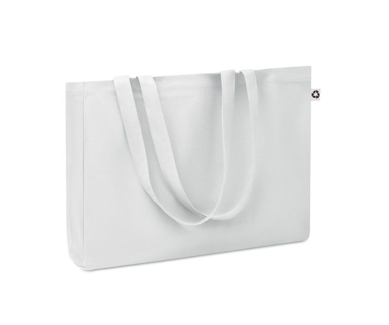 Sacosa de cumparaturi din panza reciclata sau geanta de plaja cu manere lungi si burduf. 280 gr/m².