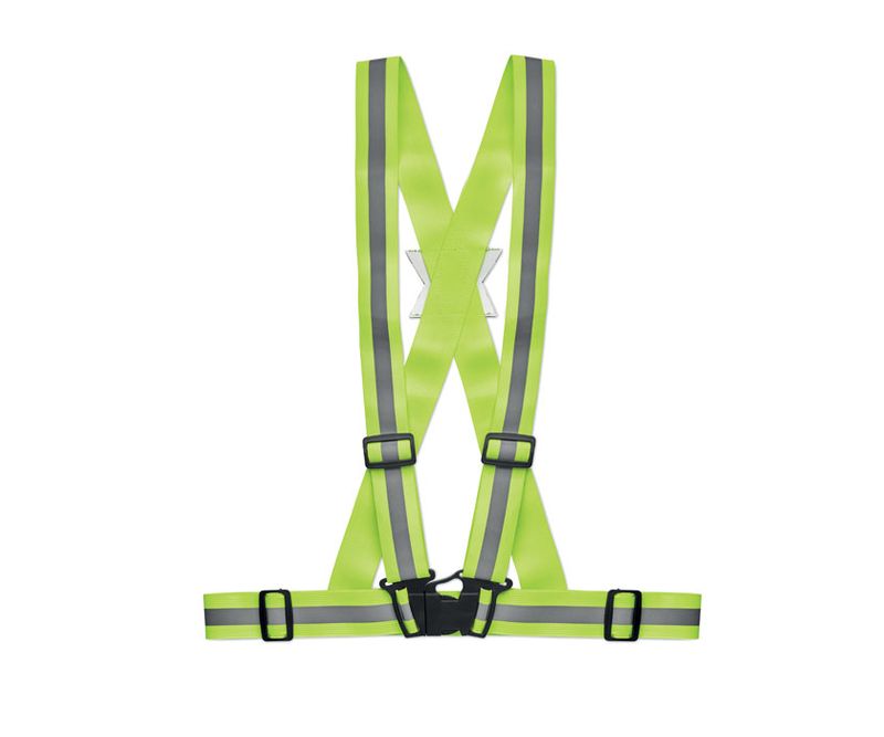 Bretele de corp reglabile reflectorizante cu dungi arginti. Ofera vizibilitate 360°. Pentru folosire doar in scopuri promotionale.