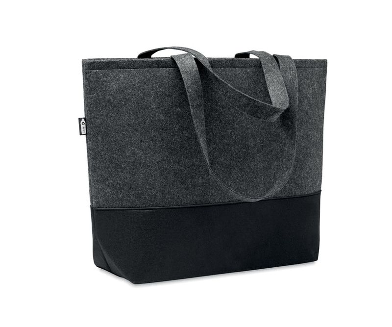 Geanta de cumparaturi din pasla RPET cu manere lungi si baza colorata.