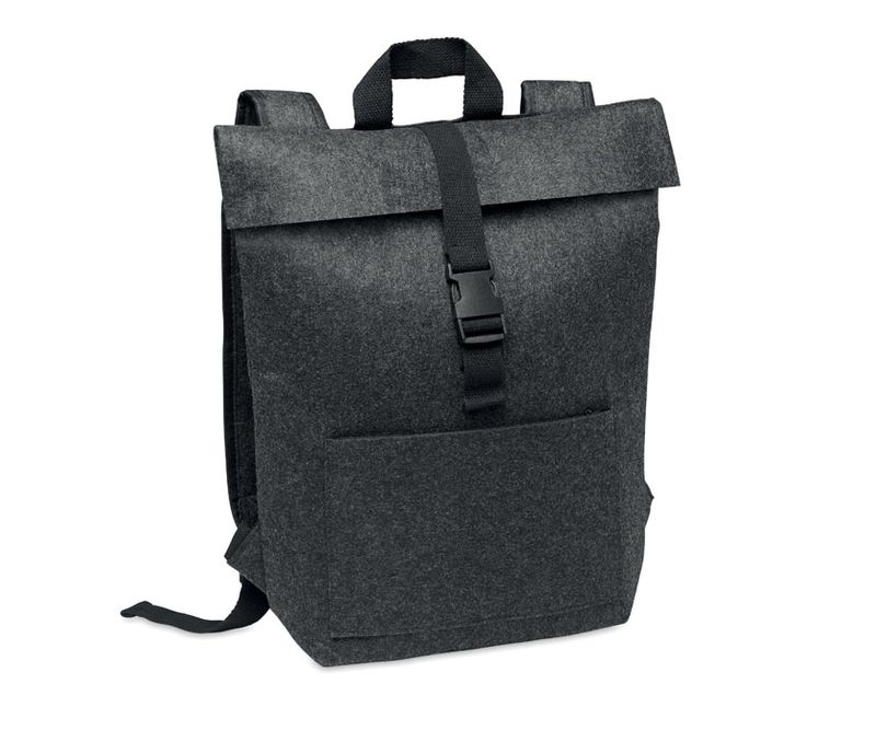 Rucsac din pasla RPET cu curea de inchidere din bumbac si buzunar cu fermoar in fata. Cu compartiment pentru laptop.