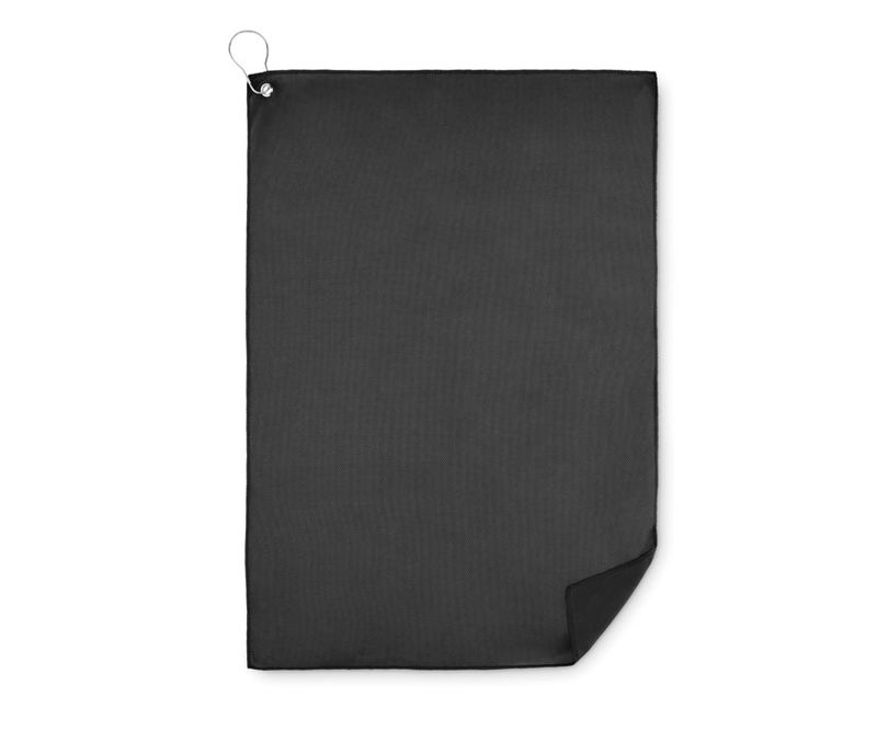 Prosop de golf din poliester RPET cu carlig metalic. Dimensiunea prosopului: 40x60cm.