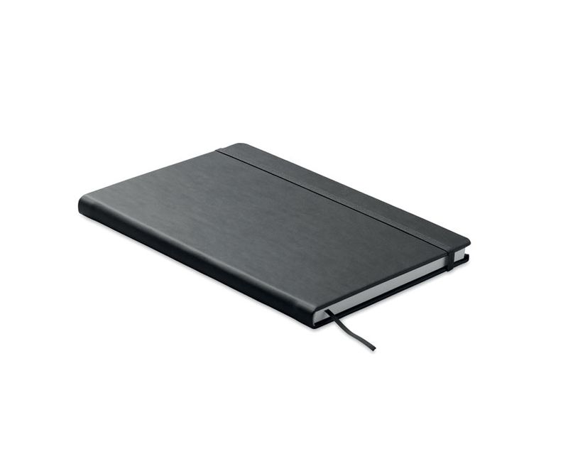 Notes A5 cu coperta tare din PU. Bloc cusut. 200 de pagini dictando (100 de coli) din hartie reciclata (80 g/m²). Inchidere cu elastic asortat si semn de carte panglica. Fabricat in UE.