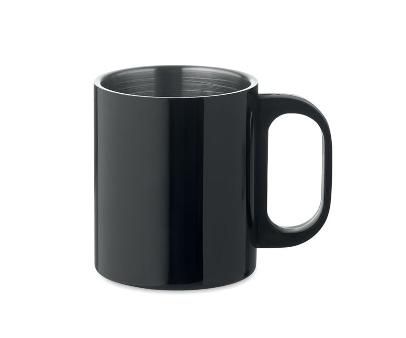 Cana din otel inoxidabil cu perete dublu si maner din PP. Capacitate: 300 ml.