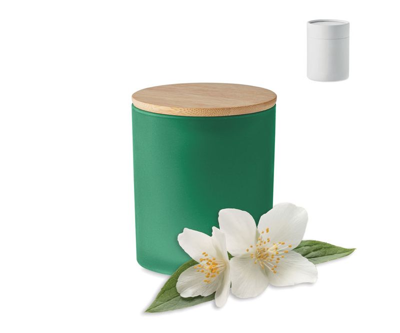 Lumanare parfumata pe baza de plante intr-un suport din sticla mata cu capac din bambus. 120 g. Timp de ardere: 20 de ore. Livrat intr-o cutie de cadou cilindrica din hartie. Bambusul este un produs natural, in consecinta pot aparea diferente de culoare, dimensiune sau desen.