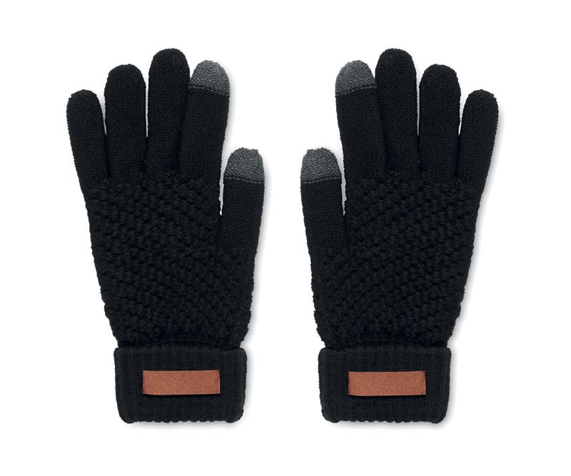 Manusi tactile pentru smartphone din RPET cu eticheta pentru zona de imprimare.