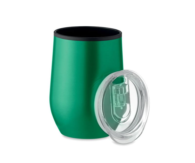 Cana termo din otel inoxidabil cu perete dublu, PP la interior si capac transparent din PS. Capacitate: 350 ml.