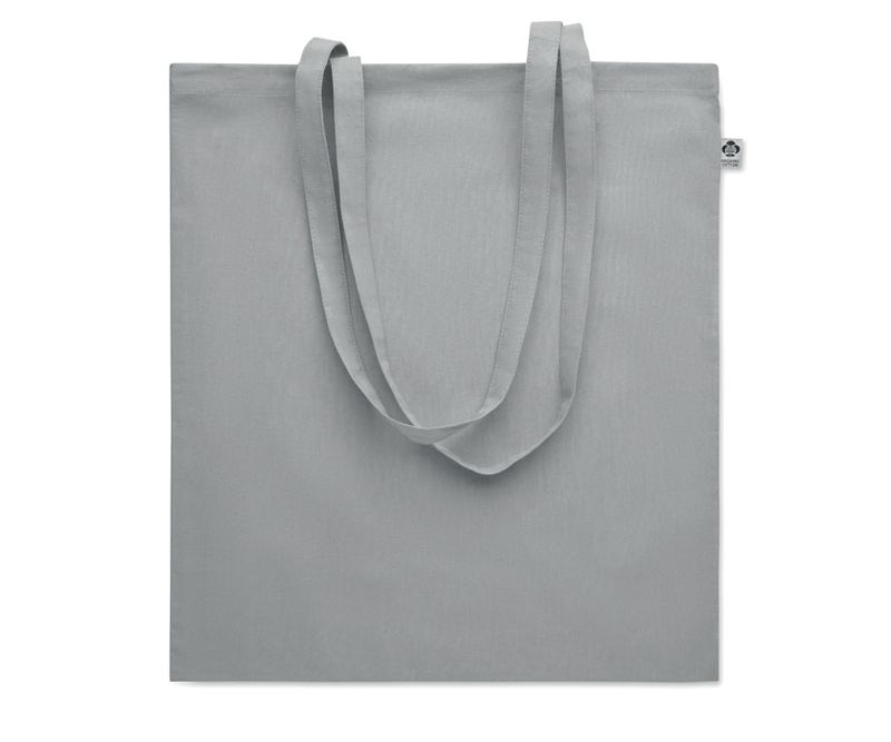 Sacosa de cumparaturi din bumbac organic cu manere lungi. 180 gr/m². Produsa in conformitate cu standardul certificat pentru utilizarea substantelor nocive in textile. Acest produs este certificat OEKO-TEX® STANDARD 100.