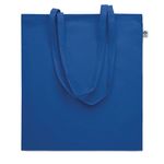 Sacosa de cumparaturi din bumbac organic cu manere lungi. 180 gr/m². Produsa in conformitate cu standardul certificat pentru utilizarea substantelor nocive in textile. Acest produs este certificat OEKO-TEX® STANDARD 100.