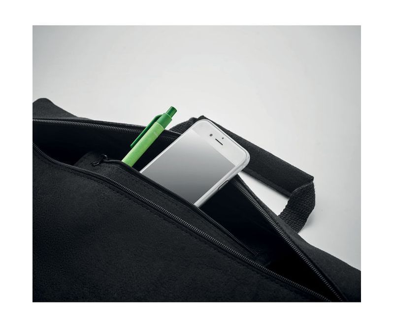 Geanta pentru laptop de 15 inch din pasla RPET cu fermoar, cu compartiment principal cu fermoar si buzunar interior.