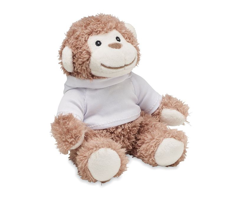 Maimuta de plus care poarta un pulover cu gluga. Ideal pentru imprimare prin sublimare.
