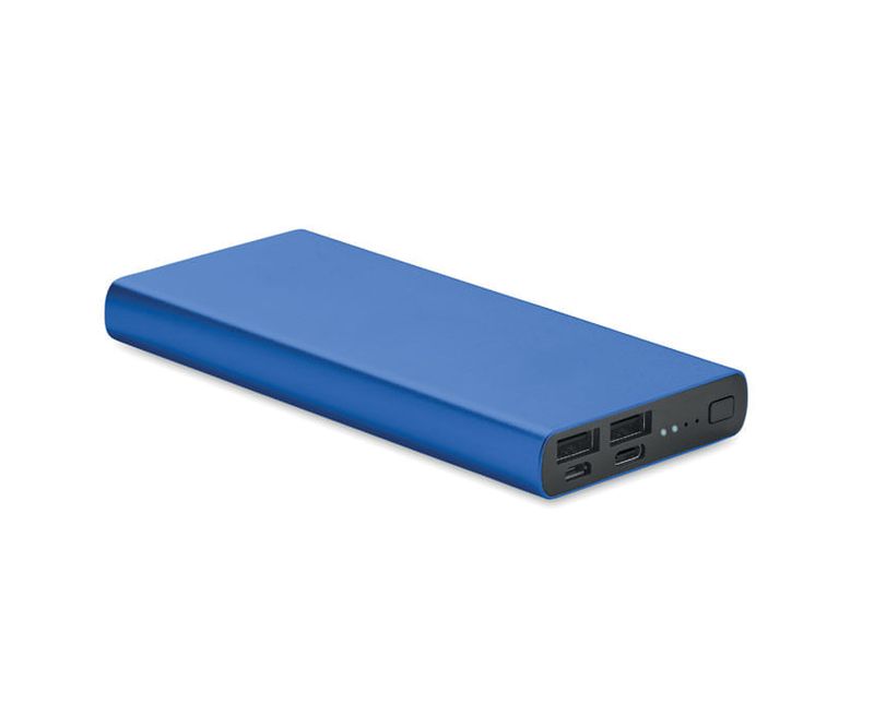 Baterie externa 10000 mAh din aluminiu reciclat. Capacitate de utilizare pentru smartphone, curent de iesire DC5V/1A si DC5V/2A . Include lumina indicatoare si cablu USB cu mufa micro USB. Suporta tehnologia de incarcare rapida (18W). Intrare/iesire: Tip-C. c=Cu asistenta de livrare a puterii (PD) pentru a incarca cele mai noi laptopuri MacPro®..