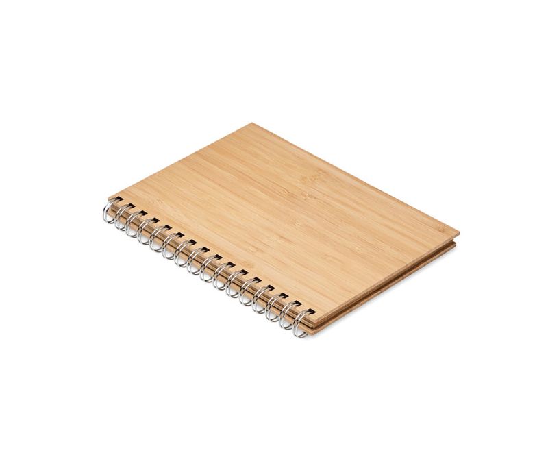 Notes A5 din bambus. Cu spira, 140 de pagini dictando, hartie kraft (70 de coli). Bambusul este un produs natural, in consecinta pot aparea diferente de culoare, dimensiune sau desen.