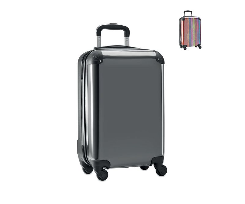 Trolley din PC si ABS cu insert foto pentru print. Are un compartiment superior cu fermoar si un compartiment inferior cu panglici. Include o incuietoare cu combinatie si cadru cu tub dublu.
