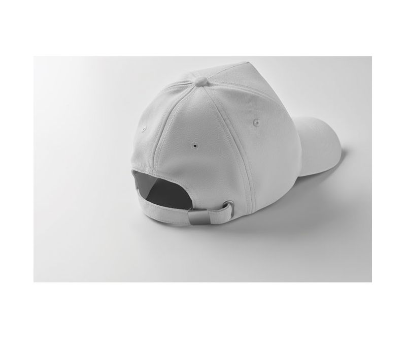 Sapca de baseball cu 5 panele din poliester Rpet 210 gr/m² , catarama din otel argintiu. 4 ochiuri brodate in culoare asortata. Marimea 7 1/4.