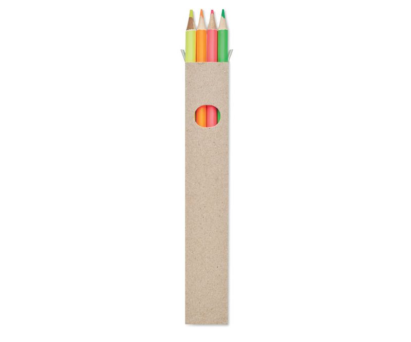 Set de 4 creioane colorate tip marker in cutie din hartie reciclata.