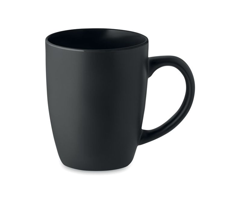 Cana din ceramica neagra mata cu interior colorat lucios. Capacitate: 290 ml. Cu un strat special pentru gravura laser