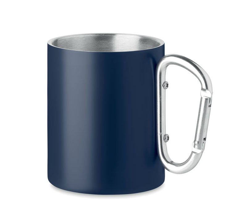 Cana din otel inoxidabil cu perete dublu, maner cu carabina. Capacitate: 300 ml.