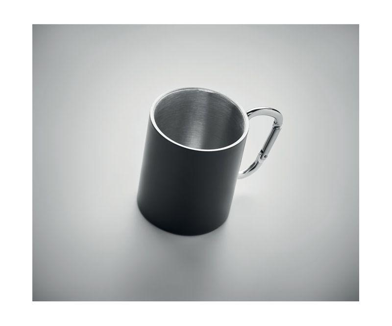 Cana din otel inoxidabil cu perete dublu, maner cu carabina. Capacitate: 300 ml.
