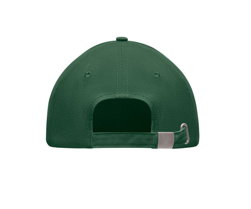 Sapca de baseball cu 5 panele din bumbac twill periat greu 260 gm/m2 cu catarama din otel argintiu. 4 ochiuri brodate in culoare asortata. Marimea 7 1/4.