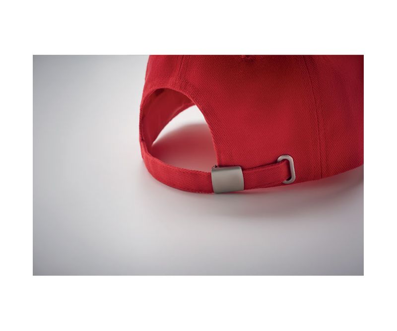 Sapca de baseball cu 5 panele din bumbac twill periat greu 260 gm/m2 cu catarama din otel argintiu. 4 ochiuri brodate in culoare asortata. Marimea 7 1/4.
