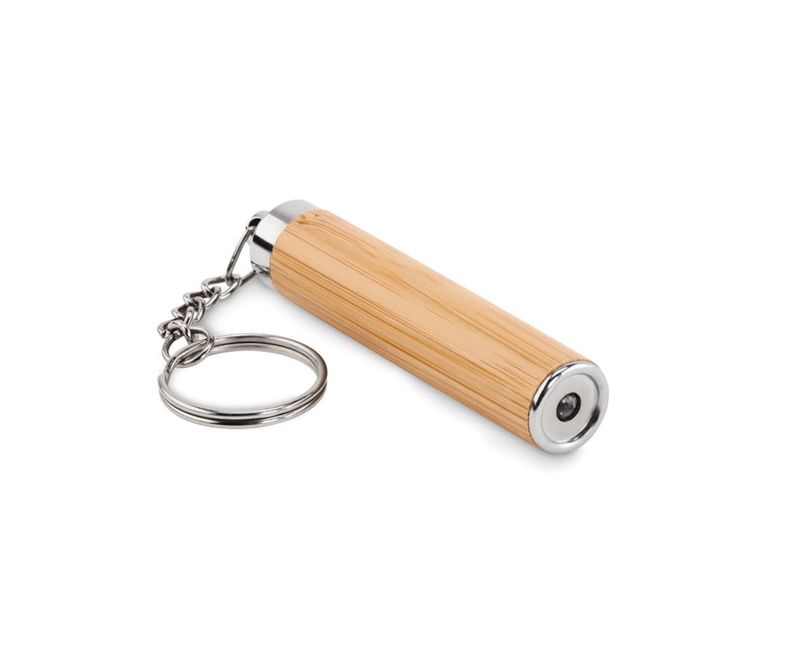 Lanternă cu bec LED din bambus cu breloc. 3 baterii LR41 incluse. Bambusul este un produs natural, în consecință pot apărea diferențe de culoare, dimensiune sau desen.