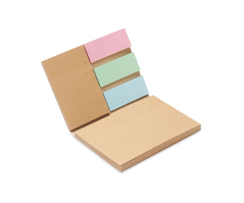 Bloc de notite autocolante din 2 piese cu coperta din hartie reciclata (25 de foi) . Blocuri de notite lipicioase (50 de foi) si 3 semne de pagina in culori asortate. Fabricat in UE.