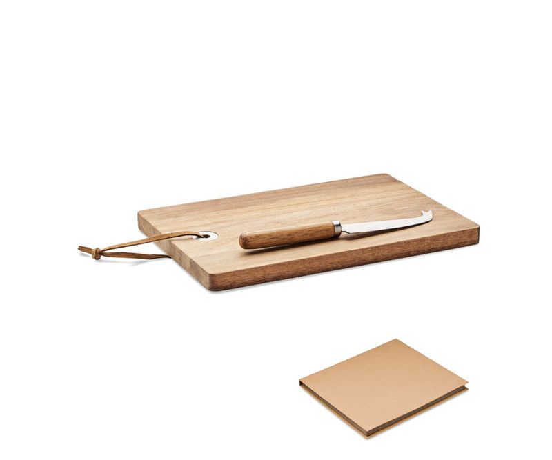 Set pentru taierea branzeturilor din lemn salcam cu cutit. Ambalat in cutie cadou din carton ondulat. Lemnul este un produs natural, in consecinta pot aparea diferente de culoare, dimensiune sau la personalizare.