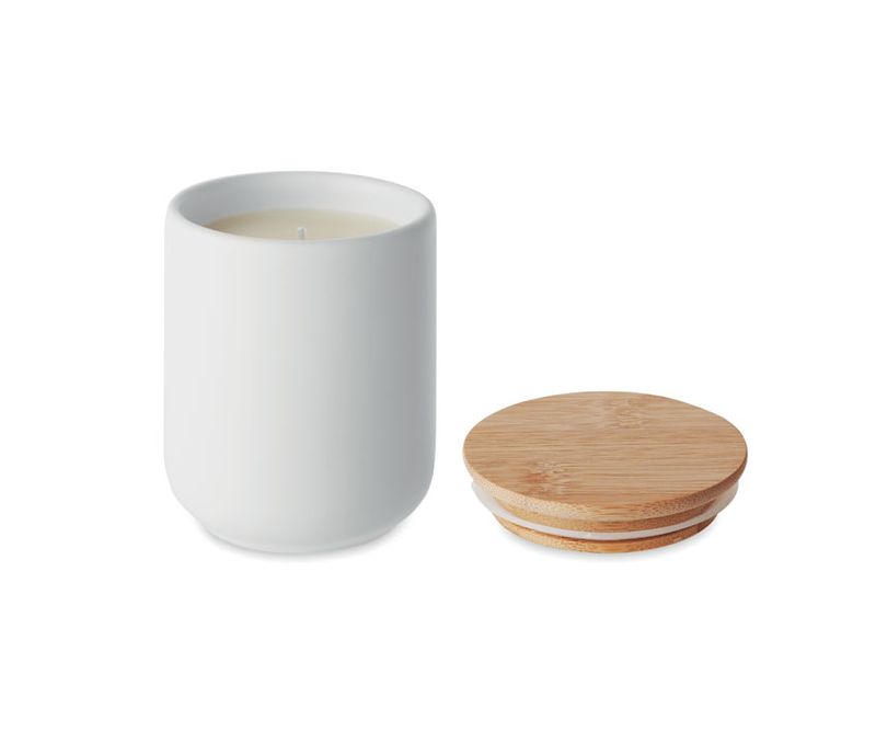 Lumanare parfumata din ceara pe baza de plante in borcan ceramica cu capac din bambus. 200 gr. Timp de ardere: 36 ore. Bambusul este un produs natural, in consecinta pot aparea diferente de culoare, dimensiune sau desen. Fara scurgere.