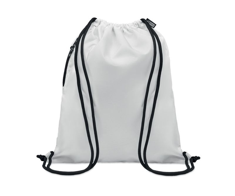 Rucsac cu snur din poliester RPET 300D cu buzunar exterior cu fermoar lateral.