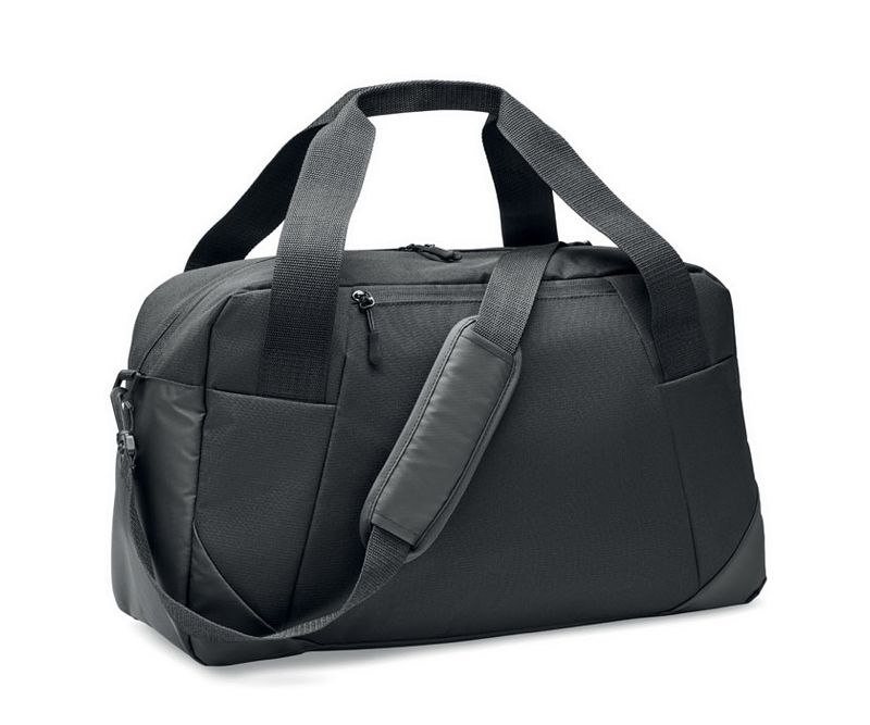 Geanta de calatorie-sport din 300D ripstop cu detalii din PU, buzunar frontal cu fermoar. Are un buzunar interior si 2 compartimente mici captusite. Suport pentru troler pe partea din spate.