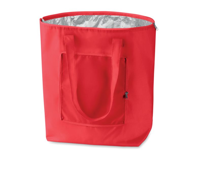 Geanta termoizolanta pliabila comoda si utila. Poliester 210D cu folie de aluminiu in interior. Material izolant: Folie de aluminiu. Capacitate 13L.