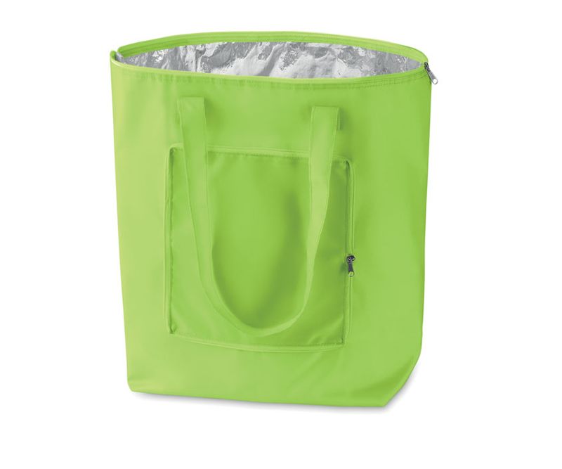 Geanta termoizolanta pliabila comoda si utila. Poliester 210D cu folie de aluminiu in interior. Material izolant: Folie de aluminiu. Capacitate 13L.