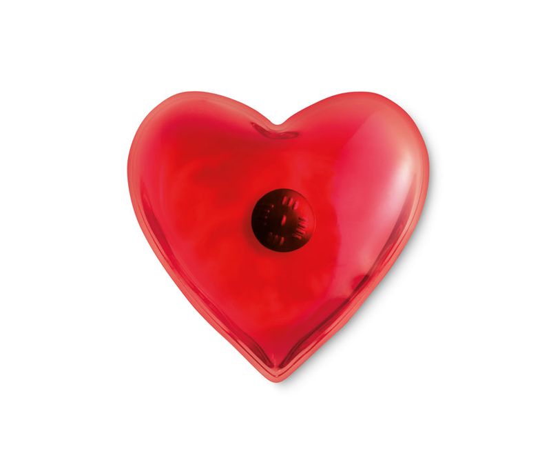 Compresa calda in forma de inima . Functioneaza prin apasarea placutei metalice din interior. Nu are nevoie de baterii. Puneti in apa calda pentru refolosire.
