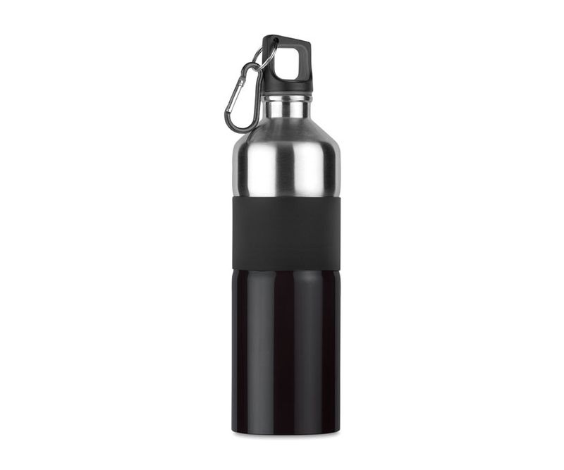 Sticla din inox, bicolora cu prindere din cauciuc si carabina. Capacitate de 750 ml. Carabina nu este pentru catarare. Fara scurgere. Deoarece este o sticla cu un singur perete, este posibil transferul de caldura.
