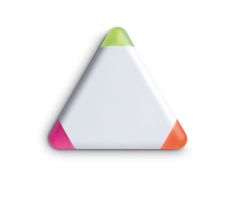 Evidentiator in forma triunghiulara in carcasa ABS. 3 culori : galben, fuchsia si portocaliu.