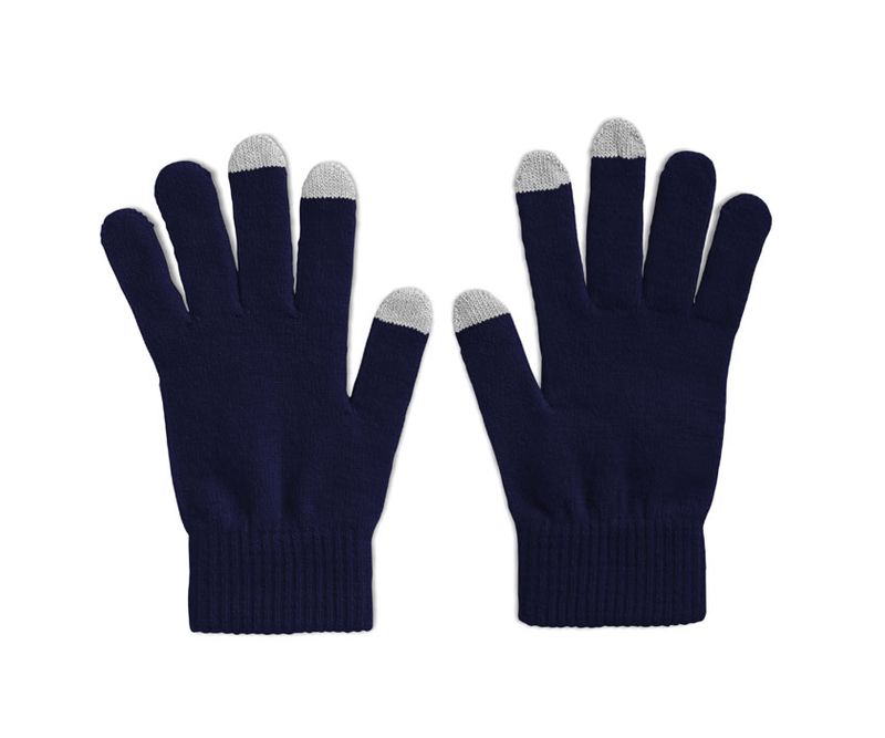 Manusi tactile pentru smartphone din acrilic. Cele 3 extremitati tactile ale degetelor sunt compuse din 0,5% fibra de otel inoxidabil, 89,5% acrilic, 10% spandex. Marimea manusilor poate varia din cauza adaosului de spandex.