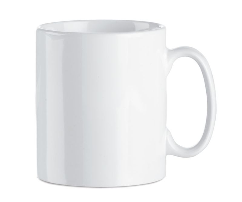 Cana ceramica de 300 ml cu finisaj special pentru personalizare prin sublimare. Ambalare individuala in cutie din carton.