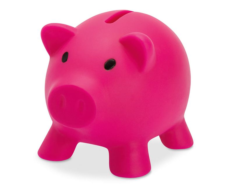 Pusculita in forma de porcusor din PVC cu capac din ABS.