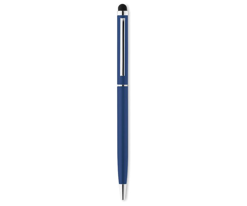 Pix din aluminiu reciclat cu deschidere prin rasucire si clip cromat lucios, capat pentru ecran LCD. Mina albastra.