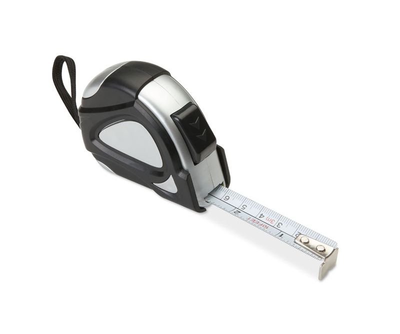 Metru pentru măsurat 3m, în carcasă argintie din ABS. Include baretă de mână și clips lucios din metal argintiu.