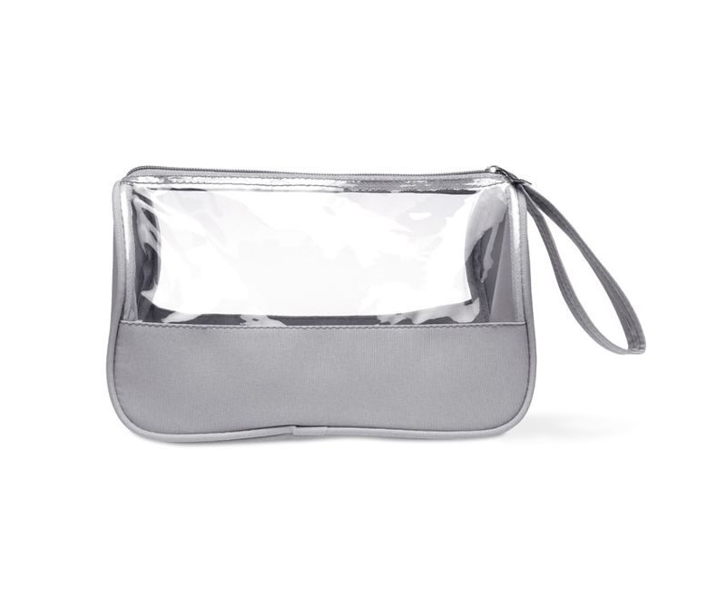 Borseta pentru cosmetice cu maner, microfibra si PVC6 fara ftalat .