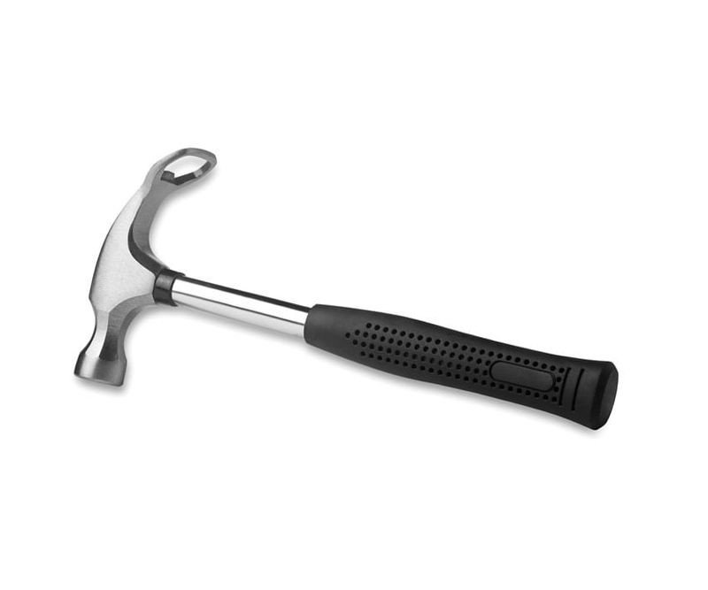 Ciocan cu deschizator pentru sticle, din otel carbon. Manerul este realizat din material TPR.