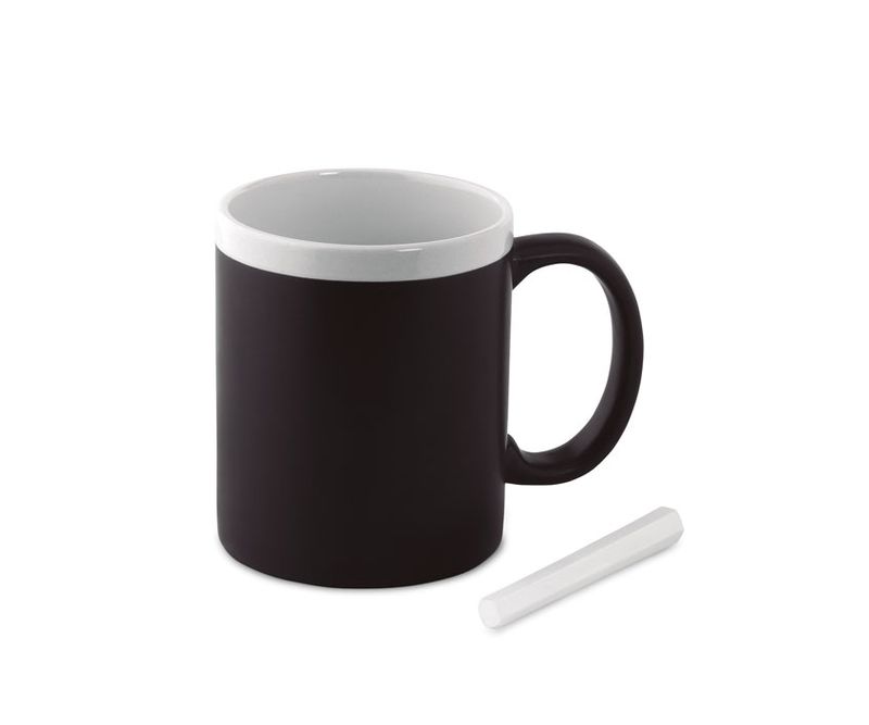 Cana din ceramica cu suprafata pentru scriere cu creta. Capacitate 300 ml. Ambalat in cutie alba individuala.