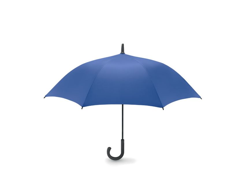 Umbrela cu deschidere automata, de lux, 23 inchi, din poliester satinat 190T, spite negre cu fibra din sticla si terminatii negre din plastic. Maner negru curbat din plastic ABS cu buton gri. Inchidere manuala.