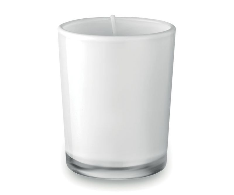 Lumanare parfumata mica in pahar colorat. 50 g. Parfum de lemn de santal.