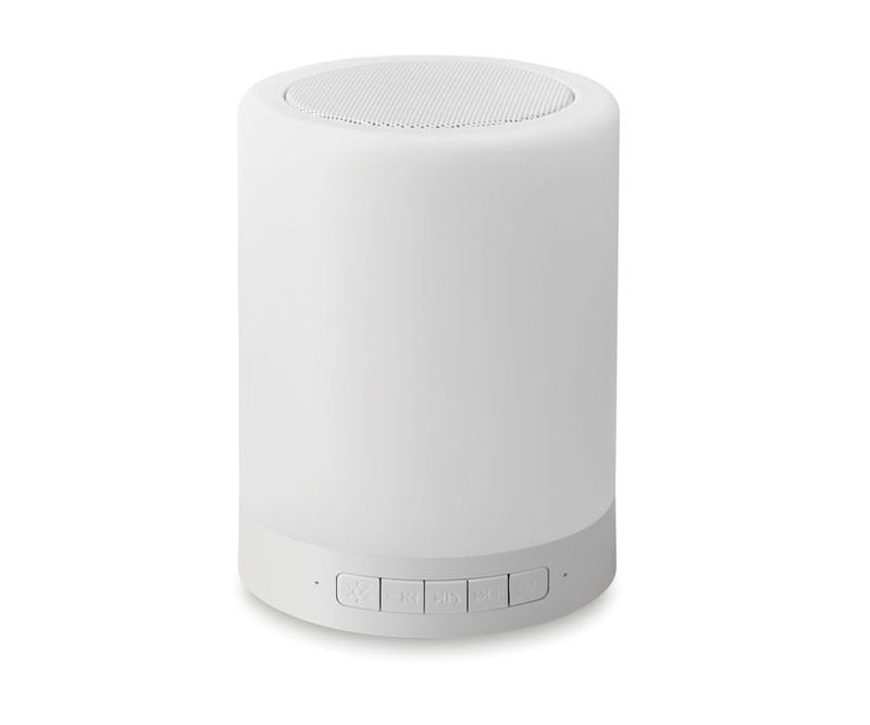 Boxa de birou sau drumetii cu functie Maini libere, loc pentru card SD, aprindere si control de intensitate lumina, prin atingere. Lumina interschimbabila in 6 culori.Telecomanda. Baterie reincarcabila Li-Ion 2000 mAh. Iesire date: 3W.Timp de functionare de aprox. 2 ore.
